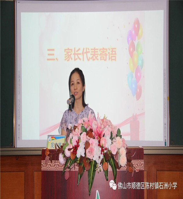 六年(1)班的陳泳錕同學代表畢業(yè)生作了畢業(yè)感言,感言中對母校充滿了感恩,并對未來要走的路充滿了期待。六年(2)班的關皓家長代表寄語全體畢業(yè)生,他告訴孩子們畢業(yè)不是休止符,而是充滿希望和奮斗的起點,他期望陽光少年們樂觀、進取,為母校增光添彩。