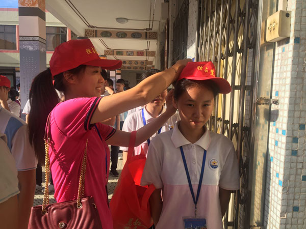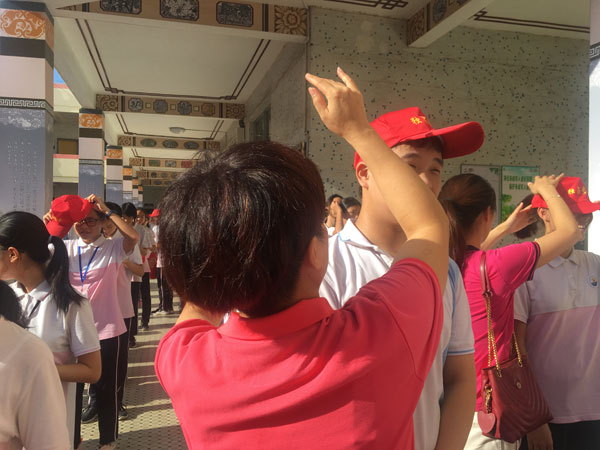 活動第一環(huán)節(jié)是由我校謝文忠校長致辭。謝校長為即將起航的學子送上了真誠的祝愿,他深情地寄語全體初三同學:“戰(zhàn)馬嘶、軍號響,你們即將上戰(zhàn)場,一千余日的學習征途,你們?yōu)⑾铝诵燎趭^斗的汗水,你們留下了馳騁校園的奮斗過的身影。面對中考,準備充分的你們要樹立必勝的信心,保持好良好、樂觀的心態(tài),沉著冷靜,相信永不服輸?shù)哪銈兌茉谥锌己臀磥砣松呐实侵?,鑄造青春的輝煌!”謝校長激動人心的話語,讓每個學生都充滿了正能量,這必將成為學生中考前進的動力。活動第二環(huán)節(jié):七月中考,天氣炎熱,烈日高照,學校特意為學生準備紅色戰(zhàn)帽,遮擋烈日,上面印有“獨占鰲頭”,寓意學生中考“魁星點頭,獨占鰲頭”。謝文忠校長和李日和校長親自為各班代表進行授帽儀式,鼓勵學生?;顒拥谌齻€環(huán)節(jié):謝文忠校長授校旗給學生代表三7唐鑫豪,學生代表揮動校旗,全級齊喊口號“鎮(zhèn)中加油,中考必勝”!我校2020年中考壯行儀式的成功舉行,讓初三學子對即將到來的中考有了更堅定的信心。相信同學們在2020年中考中定能不負期望,取得理想的成績,金榜題名,獨占鰲頭!為自己、也為我校書寫新的輝煌!