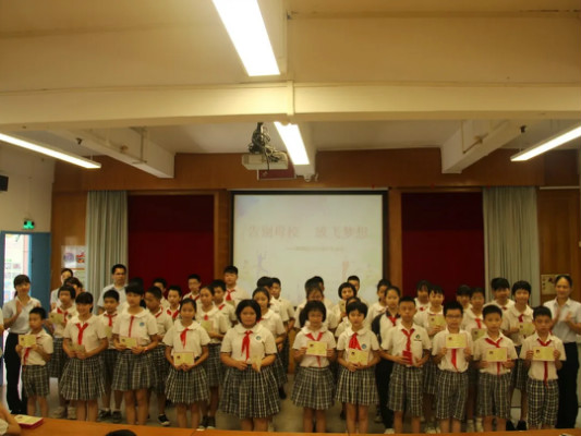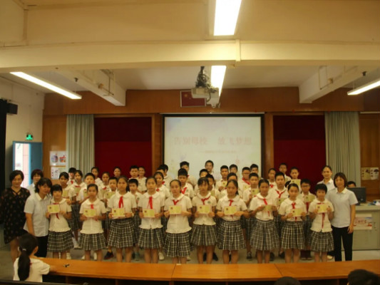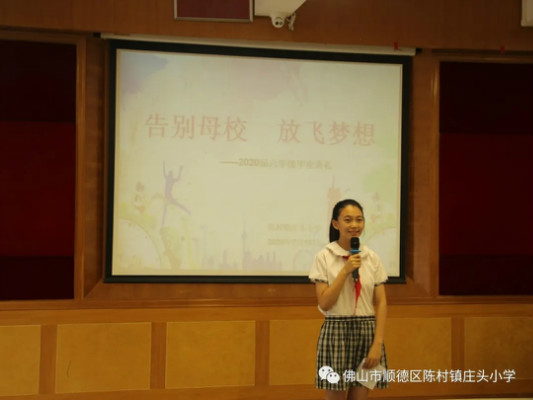 畢業(yè)典禮由我校黃曉芳副主任主持。典禮伊始,全體六年級師生觀看了由兩個班級班主任精心制作的畢業(yè)視頻,一幀幀,一幕幕,所有的時光碎片,都是這個畢業(yè)季珍貴的影像??粗约簭闹赡厶煺娴暮⑼饺諠u成熟,青春活力的少年,看著六年活動里的師生同心和歡聲笑語,在場的同學感觸良多,有的還偷偷抹掉了眼角的淚水。隨后,六年二班的陳佳玲同學作為畢業(yè)生代表發(fā)言,表達了全體畢業(yè)生對母校和老師們的感謝,也立志將來要做成為母校驕傲的社會棟梁。接著,進行畢業(yè)證書頒發(fā)儀式,全體行政和六年級科任教師為六年一班、六年二班學生分別頒發(fā)證書,并為學生送上畢業(yè)祝福,畢業(yè)生們也用自己班級響亮的口號表達心中的感激之情。