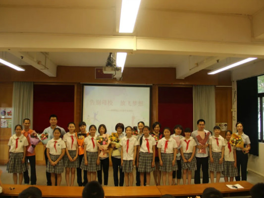 畢業(yè)典禮的高潮在謝師獻花中到來,兩個班級的學生代表為一群知識廣博、耐心細致的科任教師獻上獻花,深情擁抱中,不少老師和學生都已眼眶濕紅。