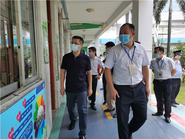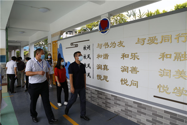 容鎮(zhèn)長一行首先巡視了學(xué)?!昂兔馈钡男@生態(tài)環(huán)境。在綠樹濃蔭下,容鎮(zhèn)長贊嘆學(xué)校綠化面積大,課室明亮整潔,為陳村學(xué)子創(chuàng)設(shè)了健康舒適的學(xué)習(xí)場(chǎng)所。容鎮(zhèn)長一邊巡察校園,一邊詳細(xì)詢問學(xué)校開學(xué)的準(zhǔn)備工作,了解疫情防控措施等情況,他充分肯定了學(xué)校各項(xiàng)工作做得細(xì)、做得實(shí),也為教師們送上了新學(xué)期祝福。