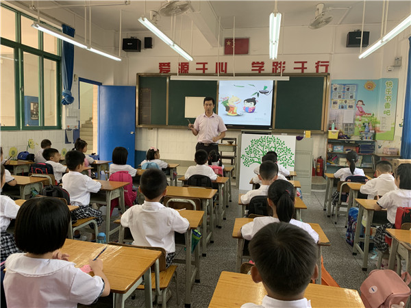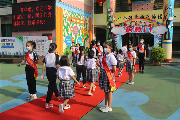 在六年級的哥哥姐姐們的引領(lǐng)下,一年級的小朋友沐浴著陽光穿越智慧門,步進教室開啟新的學(xué)習(xí)生活?!罢鹿凇杯h(huán)節(jié)讓孩子們懂得了先正衣冠,后明事理的含義?!靶腥Y”分別是“愛國禮”、“尊師禮”、“友愛禮”。在“人字開筆”環(huán)節(jié),一年級新生寫出了簡單而意義深遠的“人”字,寓意著在人生的啟蒙階段,要學(xué)會做人,是像自己認真書寫的“人”字一樣頂天立地!隨后,全體新生在成長樹上展示了自己書寫的“人”字。