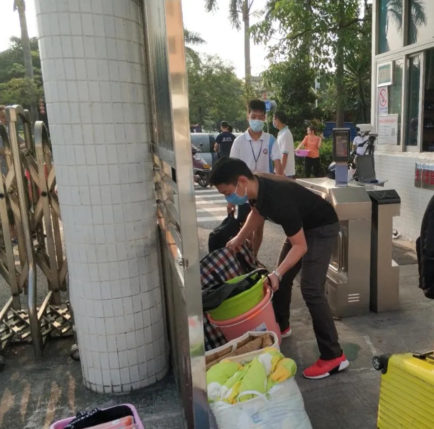 學(xué)校行政幫助住宿學(xué)生搬運(yùn)行李,初三級(jí)家委前來(lái)協(xié)助教師維持學(xué)校路段秩序,為返校學(xué)子創(chuàng)造安全通暢的道路環(huán)境。