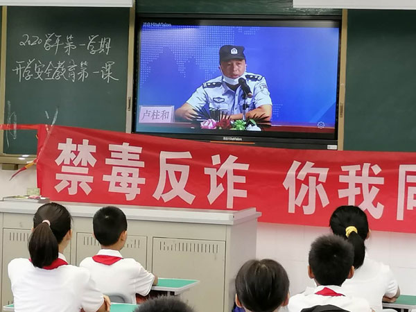 接著,由學(xué)校法制(禁毒)副校長(zhǎng)陳村舊圩合成警務(wù)區(qū)盧柱和警長(zhǎng)給全體師生上了一堂主題為“禁毒反詐,你我同行”的法制安全教育課。盧柱和警長(zhǎng)通過案例,深入淺出的講解,就“防溺水”、“交通安全”、“禁毒”、“防詐騙”等方面的安全問題和同學(xué)們進(jìn)行了深入交流,他希望全體師生加強(qiáng)安全宣傳教育、提高個(gè)人思想素質(zhì)、養(yǎng)成良好習(xí)慣、加強(qiáng)自我防范、珍惜時(shí)光,從規(guī)范做起,從我做起,為爭(zhēng)創(chuàng)安全文明校園作出貢獻(xiàn)。
