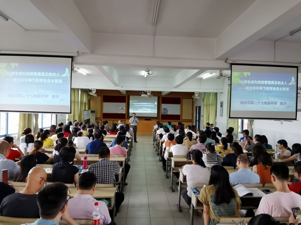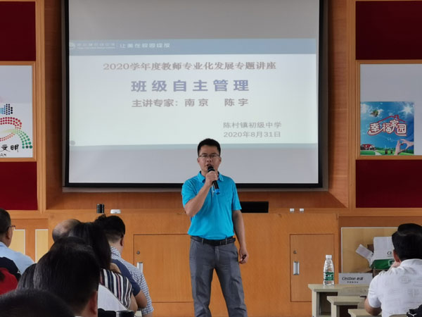 暑去秋來,學(xué)期伊始;使命催征,時不我待。為進(jìn)一步貫徹2020年陳村鎮(zhèn)教育高質(zhì)量發(fā)展座談會的精神,同時為了培養(yǎng)教師的德育素養(yǎng),獲取多元化的教育途徑,了解德育新動態(tài),全面提升教師的育德水平和創(chuàng)新能力,打造一流的師資隊伍,2020年8月31日陳村鎮(zhèn)初級中學(xué)邀請南京市第二十七高級中學(xué)陳宇老師為全校教師做了題為“讓學(xué)生成為班級管理真正的主人――班主任引導(dǎo)下的學(xué)生自主管理”的培訓(xùn)講座。
