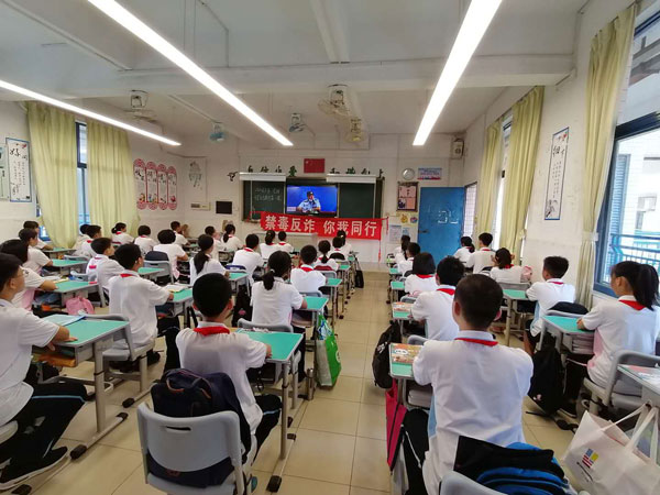 接著,由學(xué)校法制(禁毒)副校長(zhǎng)陳村舊圩合成警務(wù)區(qū)盧柱和警長(zhǎng)給全體師生上了一堂主題為“禁毒反詐,你我同行”的法制安全教育課。盧柱和警長(zhǎng)通過案例,深入淺出的講解,就“防溺水”、“交通安全”、“禁毒”、“防詐騙”等方面的安全問題和同學(xué)們進(jìn)行了深入交流,他希望全體師生加強(qiáng)安全宣傳教育、提高個(gè)人思想素質(zhì)、養(yǎng)成良好習(xí)慣、加強(qiáng)自我防范、珍惜時(shí)光,從規(guī)范做起,從我做起,為爭(zhēng)創(chuàng)安全文明校園作出貢獻(xiàn)。
