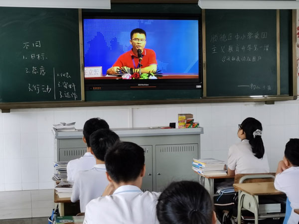 緊接著,由陳村鎮(zhèn)初級(jí)中學(xué)謝文忠校長(zhǎng)給全體師生上了開學(xué)第一堂思想政治教育課。謝文忠校長(zhǎng)作了題為《做個(gè)大寫的人》的開學(xué)講話。他從寫好人字,做個(gè)大寫的人講起,從個(gè)人到社會(huì),由淺入