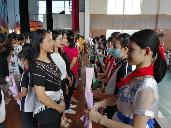潭村小學(xué)少先隊(duì)員為全體教師獻(xiàn)上最美的鮮花和祝福