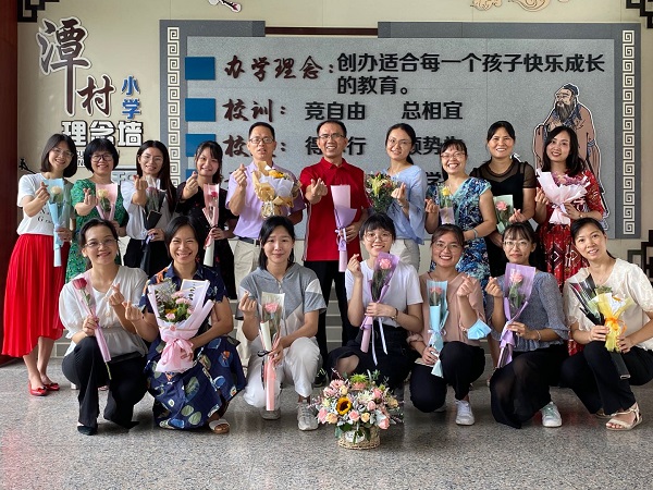潭村小學(xué)語文科組教師手捧鮮花,彰顯教師風(fēng)采
