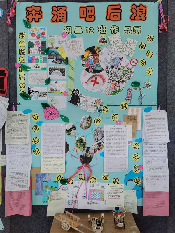 本次暑假 “十個(gè)一”作品展示活動(dòng)項(xiàng)目有:1、“書信立志 不負(fù)韶華”。2、“小小發(fā)明家”。3、“愛祖國(guó),誦經(jīng)典”――中華傳統(tǒng)文化經(jīng)典誦讀。4、“疫情當(dāng)下――我可以做的是 ”征文活動(dòng)。5、“勞動(dòng)一夏”。6、“走出校園,體驗(yàn)社會(huì)”實(shí)踐調(diào)查。7、“禁毒無(wú)小事,常掛心上記”漫畫作品。8、“印象陳村”明信片制作。記錄陳村鎮(zhèn)情,感受陳村發(fā)展。9、“陳村色彩”主題攝影。10、讀一本好書,創(chuàng)書香校園。本次暑假“十個(gè)一”活動(dòng)形式多樣,內(nèi)容豐富,給同學(xué)們提供了一個(gè)鍛煉與展示的平臺(tái),得到了同學(xué)們的積極響應(yīng)。課間期間,初一、初二級(jí)的同學(xué)們有序地參觀了暑假“十個(gè)一”作品展覽。濃墨重彩的書畫作品,心靈手巧的手工佳作,精心排版的板報(bào),讓同學(xué)們大開眼界,情不自禁地發(fā)出陣陣贊嘆。每年的暑假“十個(gè)一”作品,同學(xué)們都能夠別出心裁,充分發(fā)揮豐富的想象力和創(chuàng)造力,用心血凝聚成勞動(dòng)的成果。