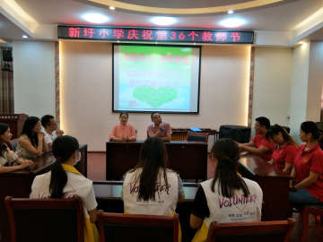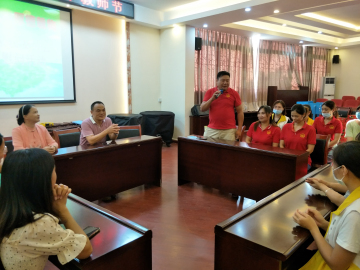為了熱烈慶祝第36個教師節(jié),新圩小學家委會成員在家委會總會長何銘昌先生的發(fā)動下,分別在校級家委、班級家委以及家長志愿者服務隊的鼎力支持下,提前自籌資金,奉獻愛心,共謀劃策,統(tǒng)籌安排,即使是炎炎烈日下,不顧滿頭大汗,不顧來回奔波,精心挑選一份簡單又貴重的甜蜜愛心禮物,準備在教師節(jié)為每一個老師送上深情祝福