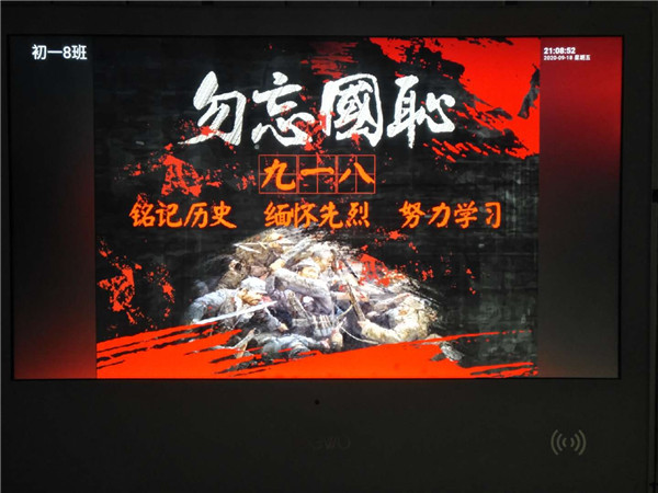 此外,學(xué)校各班電子班牌上還展示了“勿忘國恥”紀念海報。