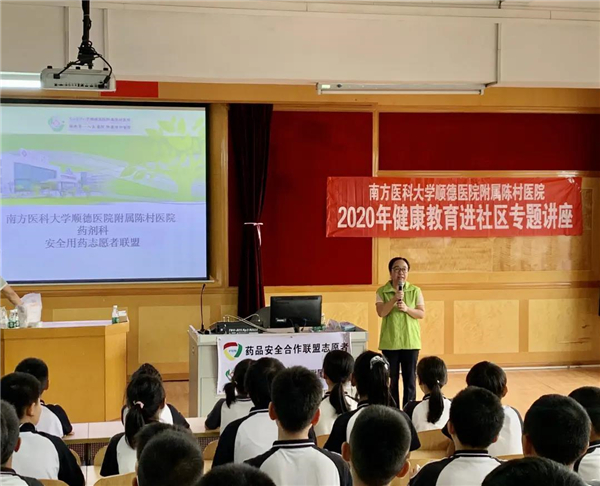 為了普及小學(xué)生的藥品安全知識,提高小學(xué)生的用藥安全意識,南方醫(yī)科大學(xué)順德醫(yī)院附屬陳村醫(yī)院藥劑科李莉藥師帶領(lǐng)藥劑師志愿團(tuán)隊(duì),于9月25日下午為五年級的全體師生開展了一堂生動有趣的安全用藥講座。