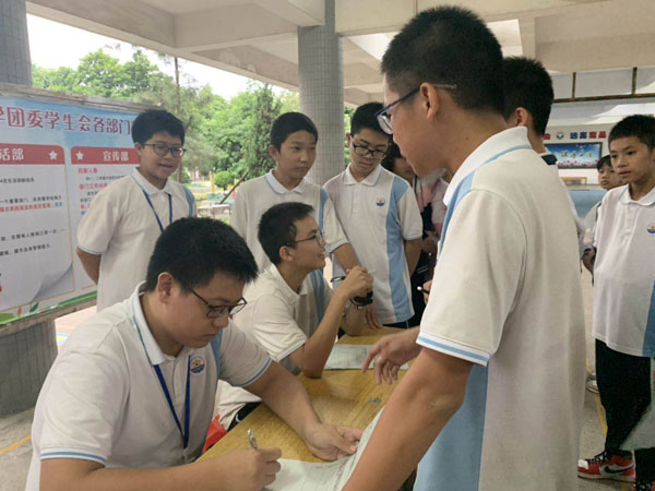 本次學(xué)生會招新工作通過廣播、班會課、海報宣傳等方式,從海選,競選演講,到確認新任學(xué)生會干部名單并發(fā)表就職演說,共歷時一個月。這次陳村鎮(zhèn)初級中學(xué)學(xué)生會招募以下七個部的學(xué)生會干部成員:禮儀部、生活部、宣傳部、記者部、國旗班、禮儀隊、鼓樂隊。競選及入會辦法是參選學(xué)生首先到班主任、班長處領(lǐng)表填寫,并交班主任和級長審批,同意后可以參加初賽。競選方式是承繼上年傳統(tǒng)招聘形式,即人才交流市場式招聘,讓學(xué)生提前融入社會的招聘網(wǎng),感受競爭的激烈,從而更好激發(fā)學(xué)生努力學(xué)習(xí),不甘落后的斗志。具體內(nèi)容有自我介紹(不能讀稿)和現(xiàn)場答辯。競選過程中,同學(xué)們認真準備,躊躇滿志,充滿信心地介紹自己,滿懷激情地發(fā)表自己當(dāng)選后的規(guī)劃,頗有仁者見仁,智者見智的范兒,將自己的能力展示得淋漓盡致。經(jīng)過層層角逐,一批優(yōu)秀學(xué)生脫穎而出,成為新一屆團委學(xué)生會的骨干。