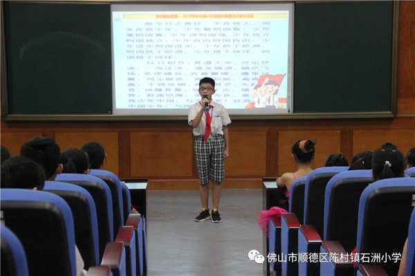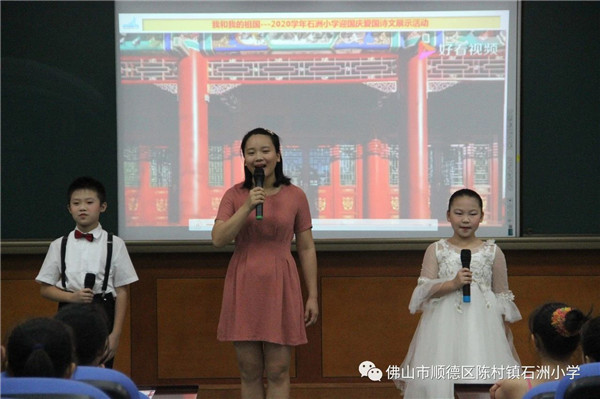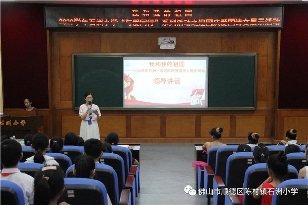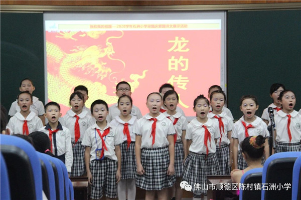2020年9月28日下午,石洲小學(xué)電教室主會(huì)場(chǎng)、各班分會(huì)場(chǎng)上的陽(yáng)光少年們愛國(guó)熱情高漲,歌舞《我和我的祖國(guó)》拉開了本次活動(dòng)的帷幕。緊接下來(lái)的節(jié)目形式多樣,豐富多彩。詩(shī)歌朗誦《我驕傲 我是中國(guó)人》、《中華頌》慷慨激昂,把對(duì)祖國(guó)的贊美與熱愛表現(xiàn)得淋漓盡致?!吨戮匆痪€抗疫英雄》,感人至深,聽者無(wú)不感動(dòng)于“逆行者”抗疫精神的偉大。一曲《龍的傳人》那稚嫩的聲音,純真的笑容,愛國(guó)的情懷贏得了在場(chǎng)所有觀眾的陣陣掌聲……隨后,何培雯副主任對(duì)本次活動(dòng)進(jìn)行了小結(jié),贊揚(yáng)了各年級(jí)組、各班級(jí)展現(xiàn)了石洲小學(xué)陽(yáng)光少年們積極向上,奮發(fā)進(jìn)取的精神面貌。經(jīng)過激烈的角逐最后《國(guó)家》榮獲最佳表演獎(jiǎng)、《我和我的祖國(guó)》榮獲最佳創(chuàng)意獎(jiǎng)、《龍的傳人》榮獲陽(yáng)光風(fēng)采獎(jiǎng)等各項(xiàng)獎(jiǎng)項(xiàng)。