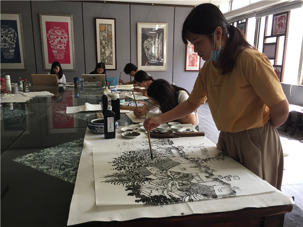 美術(shù)老師們認(rèn)真創(chuàng)作