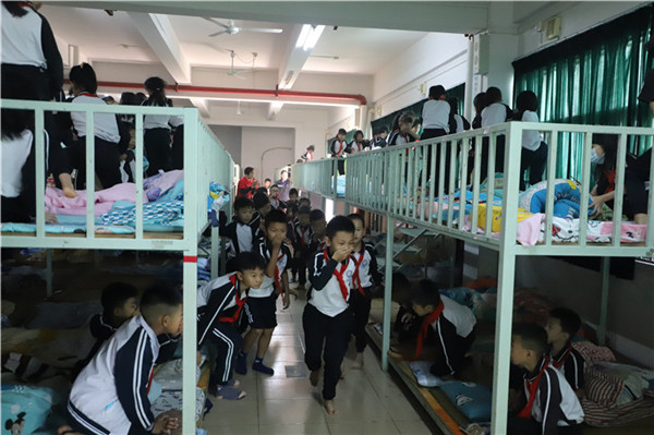 2020年11月9日,初冬的暖陽灑遍校園,在全國第二十八屆消防日這個特殊的日子里,為切實加強學校安全工作,提高廣大師生安全防范意識、安全疏散與自救能力,保障師生生命安全,打造平安校園,梁釗林紀念小學開展“關注消防 生命至上”專項教育活動。此項活動分為早上國旗下講話、睡室安全疏散演練、主題班會課、課室逃生疏散演練。