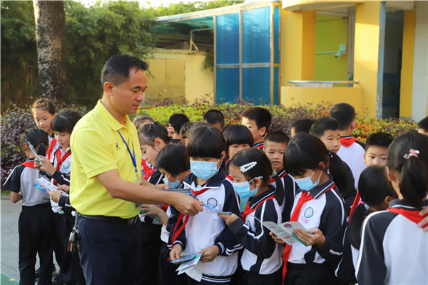 全國消防日適逢星期一,黃家強主任結合消防安全進行國旗下講話。黃主任指出,同學們課間應該文明活動,注意安全。