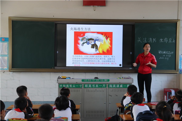 下午的第六節(jié)班會課從“認識火災:火災的危害,火災處置:報警的方法,學習認知:認識消防標志,自我保護:火場逃生的方法,課堂互動:我來考考你”幾環(huán)節(jié)展開。每一個環(huán)節(jié)內容不盡相同有內在的關聯(lián)性,層層遞進。班會課上,老師一邊點擊PPT一邊組織學生進入各個環(huán)節(jié)。PPT圖文并茂,既通俗易懂牢牢吸引學生注意力,又有文字幫助學生加深理解。學生們目不轉睛地看著投影幕,時而為驚險的現(xiàn)場圖片而驚呼,時而為回答問題爭相舉手,場面熱烈有序。