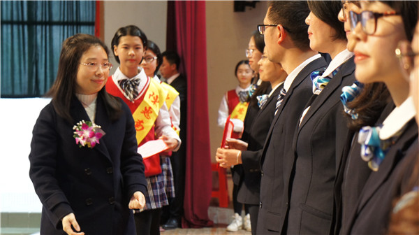 學校行政辦公室主任劉海平主持了大會。由紀中學子朗誦的《古經(jīng)新編 傳承共融》拉開了頒獎大會的序幕。接著,大會播放視頻,回顧一年來學校所做的工作及取得的成就。