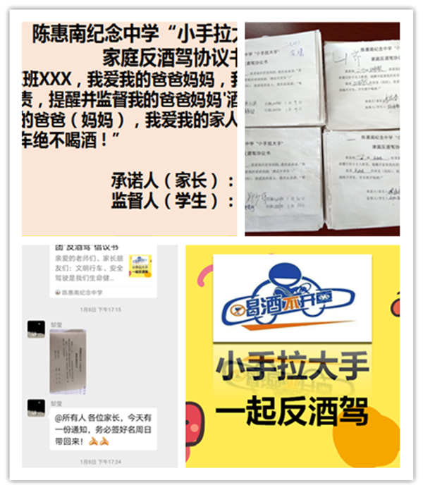 此外,陳惠南紀(jì)念中學(xué)還通過學(xué)校網(wǎng)站、電子屏、師生和家長(zhǎng)微信群宣傳“反酒駕”,擴(kuò)大了“小手拉大手反酒駕”主題教育的影響力。