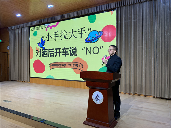 1月6日,陳惠南紀(jì)念中學(xué)通過學(xué)校微信公眾號(hào)發(fā)出《陳惠南紀(jì)念學(xué)校教育集團(tuán)反酒駕倡議書》,倡議全體師生、家長(zhǎng)朋友自覺宣傳“反酒駕”、自身作則“反酒駕”,文明行車,安全出行。同時(shí),陳惠南紀(jì)念中學(xué)德育處副主任曾大勇在教職工會(huì)議上,為全體教師舉辦了一場(chǎng)“反酒駕”專題教育講座。
