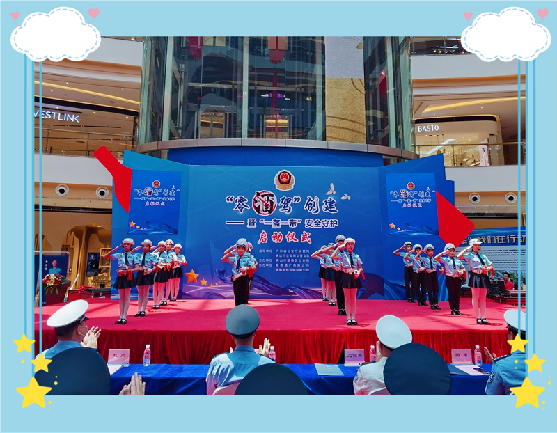 6月12日,我??彀逄厣?jié)目《智慧新交警 隱患無處藏》,受邀參加由佛山市順德區(qū)公安局主辦的 “零酒駕”創(chuàng)建――暨“一盔一帶”安全守護啟動儀式。在活動中,環(huán)城小學(xué)20名少年小交警攜快板節(jié)目精彩亮相!