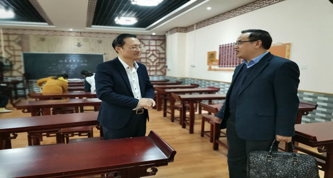 在實(shí)地考察和深入課堂聽課指導(dǎo)后,王建春和我校全體領(lǐng)導(dǎo)、部分骨干老師在行政會(huì)議室舉行了座談會(huì)。