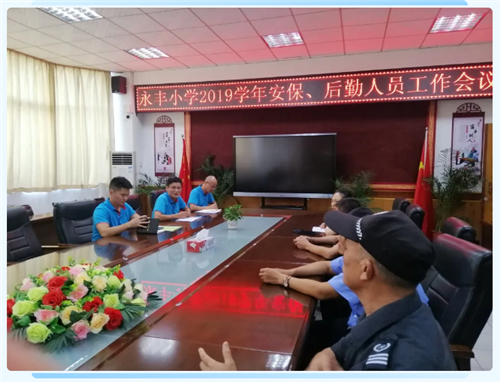 為加強(qiáng)永豐小學(xué)的后勤管理,確保暑假及下學(xué)期工作安全有序,我校于7月16日下午舉行了2019學(xué)年安保、后勤人員工作會(huì)議。會(huì)議由吳凡校長(zhǎng)主持,鄧源強(qiáng)主任、吳康明副主任和安保、保潔、文員等六名后勤人員參加了會(huì)議。
