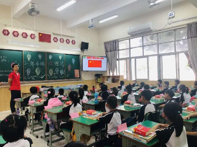 班主任組織學(xué)生開展順德區(qū)中小學(xué)愛國主義開學(xué)第一課《我和我的祖國》活動。