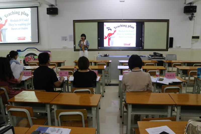第一環(huán)節(jié)是8分鐘的說課:所有參賽老師按照抽簽順序一到十號(hào)進(jìn)行說課比賽,說課題目是外研社初一上 M9U2 They are waiting for buses or trains。在第一環(huán)節(jié)比賽中十位青年教師各自展示了自己對(duì)該課堂的思考和設(shè)計(jì),新穎的設(shè)計(jì)、精美的課件,使每位教師的說課都獨(dú)具特色,精彩紛呈。