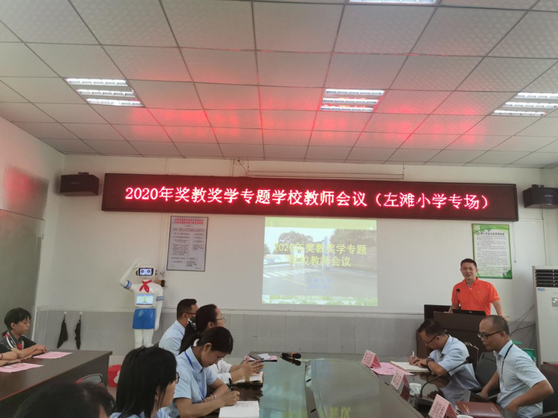 為學習貫徹龍江鎮(zhèn)2020年度獎教獎學大會精神,乘著尊師重教的和風,9月8日下午,龍江左灘小學召開2020年獎教獎學專題學校教師會議,龍江鎮(zhèn)委傅敬海委員、鎮(zhèn)教育局代表以及左灘小學全體教師出席本次會議。