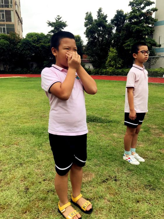 (各班主任帶領(lǐng)學(xué)生抱頭沿著指定路線快速疏散)