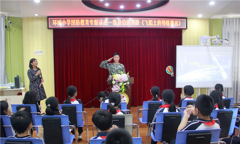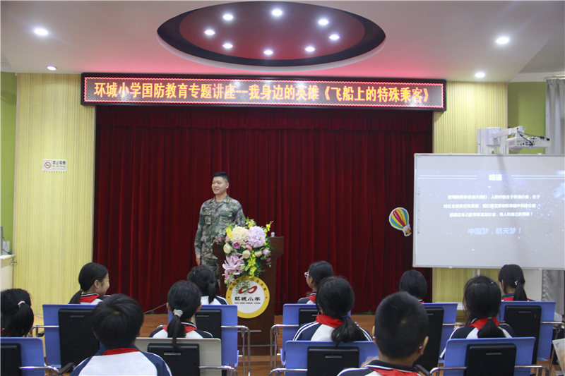 劉連長(zhǎng)以“飛船上的特殊乘客”為主題,向環(huán)小學(xué)子們分享了在空軍部隊(duì)中的所見(jiàn)和所感。隨后,劉連長(zhǎng)向孩子們?cè)敱M地介紹了我國(guó)航天事業(yè)所取得的成就,分享了楊利偉、景海鵬等宇航員為我國(guó)航天事業(yè)所做出的卓越貢獻(xiàn)。
