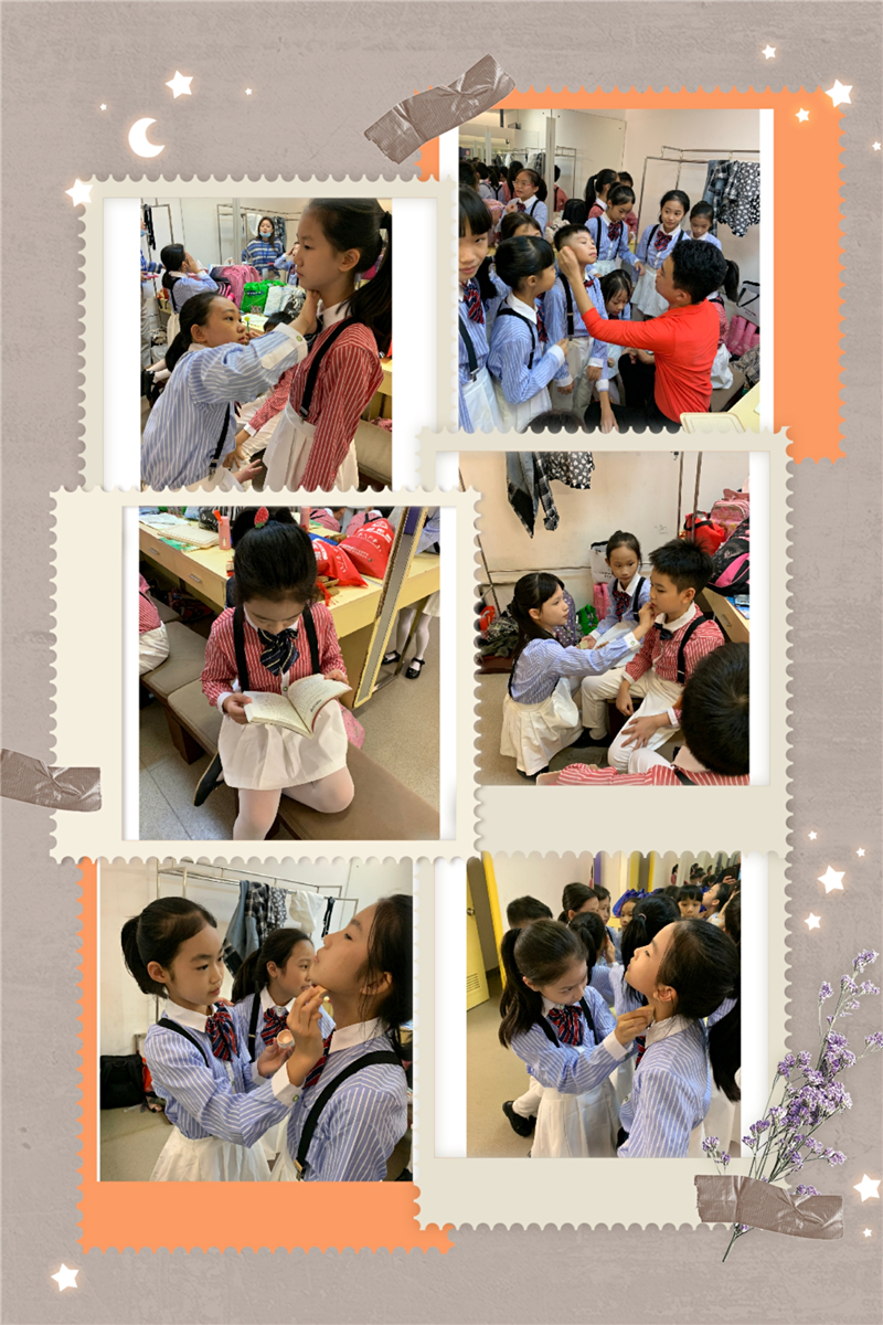 演出開始前,張康慧老師和郭曉晴老師給小演員畫起了美美的演出妝。我們的快板小精靈更是心靈手巧,演出,化妝樣樣再行。