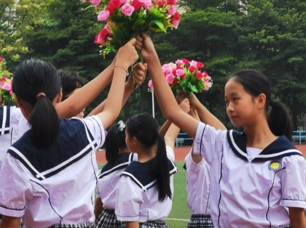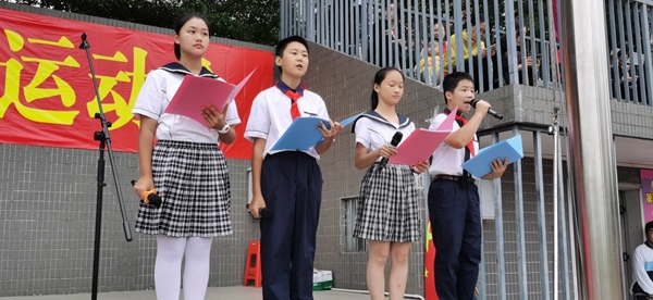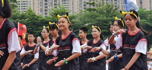 上午八時許,主席臺上,來自各級教育部門的領導、學校行政、社區(qū)嘉賓、家長代表、教師代表、評委等齊聚一堂。當雄壯的《運動員進行曲》響起,國旗方隊、校旗會旗方隊、舉牌方隊、花隊、彩旗隊、家長義工隊等方陣踏著整齊的節(jié)拍,邁著矯健的步伐從主席臺前經過,營造了開幕式莊嚴隆重而朝氣蓬勃的氛圍。接著,全校五十多個班級的入場式方陣依次閃亮登場。形式多樣的隊形、設計精致的班服、妙趣橫生的道具、多姿多彩的舞蹈、動感十足的音樂、創(chuàng)意無限的才藝,掀起了一波波轟動,贏得了在場嘉賓和師生一陣陣熱烈的掌聲。