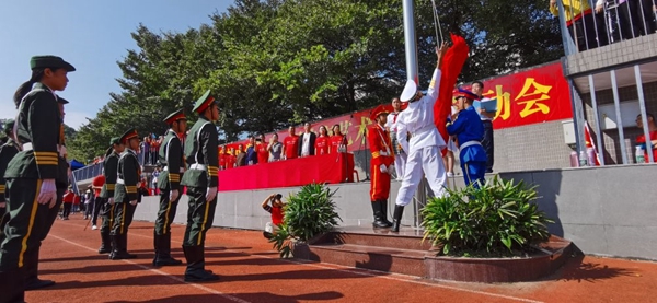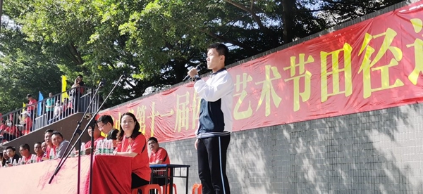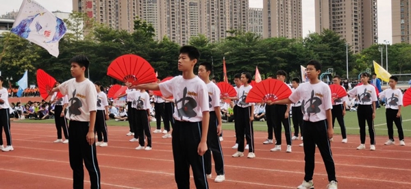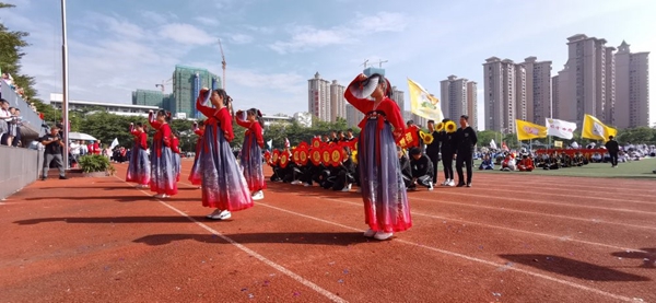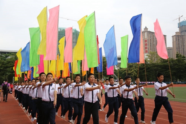 隨后,全體嘉賓與順中師生一道進行莊嚴的升旗儀式。在全場唱響嘹亮的國歌后,孫蓉姬副校長上臺致開幕辭。最后,潘惠紅校長正式宣布順峰中學第十一屆體育藝術節(jié)開幕。在一片掌聲和歡呼聲中,開幕式被推向高潮!