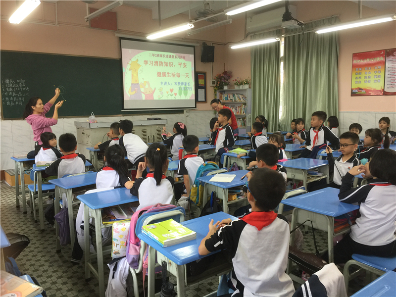 課堂上,孩子們聽得全神貫注,一只只小手高高舉起,饒有興趣地對上課的家長問這問那,一節(jié)課下來,孩子們有了不少的收獲。