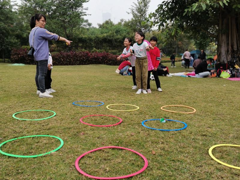 我們分工合作,有的擺放食物,有的鋪好墊子,有的安裝帳篷,有的負(fù)責(zé)協(xié)助后來的家長找大本營。要表揚(yáng)孩子們,都聽從安排,和家長們一起布置活動(dòng)場地,做自己力所能及的工作。