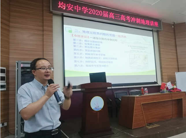 6月20日下午,順德區(qū)地理教研員吳俊和老師蒞臨均安中學(xué)開展題為《用思維和智慧點亮高考之路――地理成因類與過程類問題的解題技巧》的高考地理講座,為我校地理備考進(jìn)行最后沖刺明確了方向。我校高三年級全體文科生以及高三地理備課成員都參加了此次講座。