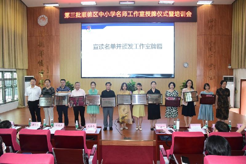 為加快名師隊伍建設,搭建好教師共同發(fā)展平臺,6月30日,順德區(qū)第三批中小學名師工作室授牌儀式在順德區(qū)華僑中學舉行。區(qū)教育局冼彌冬副局長、區(qū)教育局組織人事科劉進華科長及曾麗輝副科長、區(qū)教育發(fā)展中心教師發(fā)展研究室唐信焱主任、教育部校長國培專家肖起清教授等領導、嘉賓出席會議。