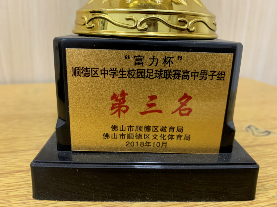 2018年順德區(qū)中學生“富力杯”校園足球聯(lián)賽高中男子組、女子組都榮獲第三名;