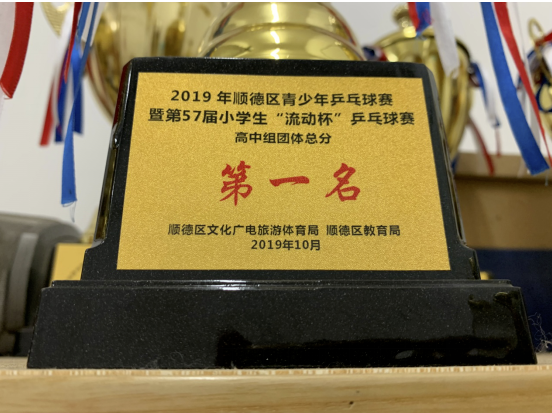 2018年度、2019年度順德區(qū)青少年乒乓球比賽暨56屆小學生“流動杯”乒乓球比賽高中組團體總分第一名;