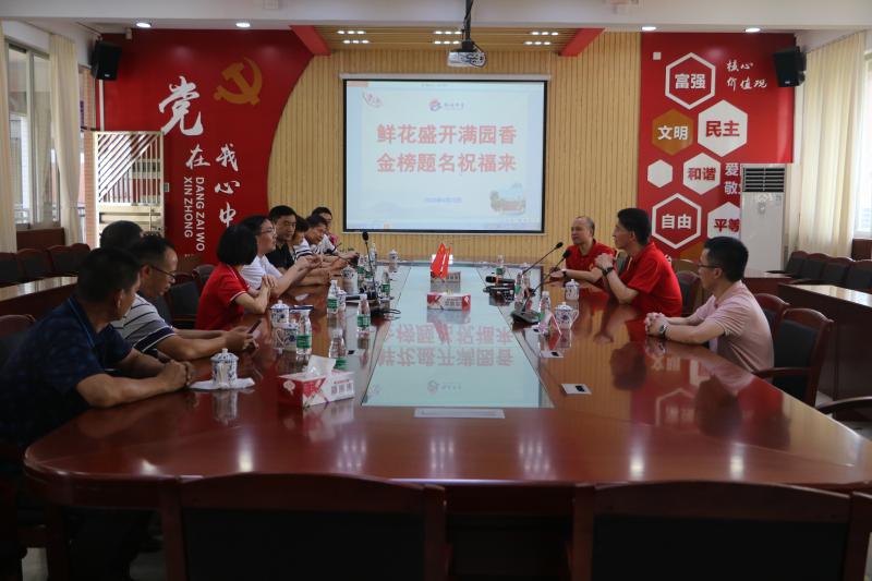 6月30日,艷陽高照,勒流中學(xué)的天空一片蔚藍(lán)。在距離高考還有6天時間的緊要關(guān)頭,順德區(qū)教育局張毅副局長、區(qū)教育發(fā)展中心教研室余逸主任、邵永岳副主任蒞臨我校對高三教師進行慰問。我校劉毅校長、楊月橋副書記、廖令潔副校長、李國富副校長等行政熱情地接待了張毅副局長一行。