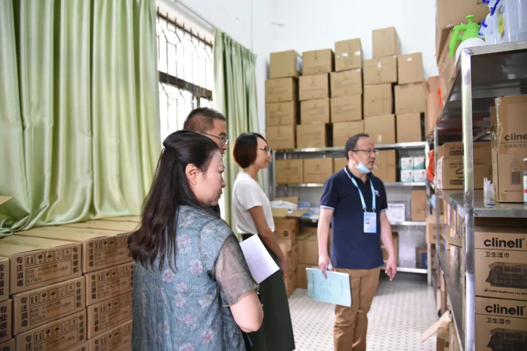 隨后,區(qū)督學走訪校園,了解我校配餐流程,參觀防控物資儲備室、校醫(yī)室、隔離室等的場所。