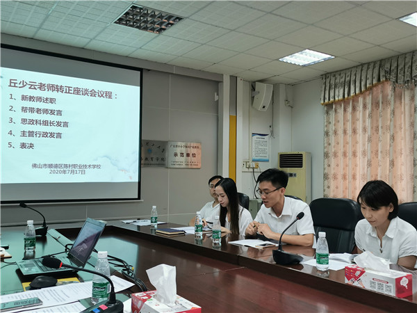 一年前,陳村職校匯聚了一群懷揣教育夢(mèng)想的新青年教師,為促進(jìn)新教師互相學(xué)習(xí),互為鏡鑒,2020年7月17日,陳村職業(yè)技術(shù)學(xué)校召開(kāi)2019年新教師轉(zhuǎn)正座談會(huì),學(xué)校專職副書(shū)記黃麗賢、教務(wù)處主任周忠紅、德育處主任鐘全榮、部長(zhǎng)科組長(zhǎng)、幫帶教師及龔成、林曉玲、楊慧、丘少云、袁泳峰五位新教師出席本次座談會(huì)。