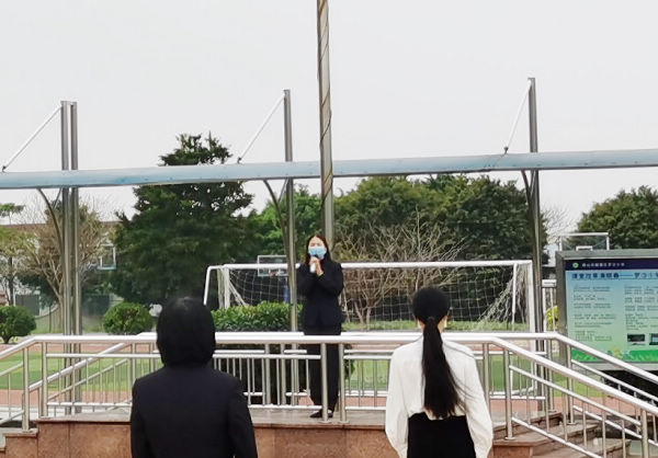 空曠的操場上,莊重如常。張永新校長和行政團隊分別擔任本次儀式的升旗手和護旗手,步伐整齊劃一。