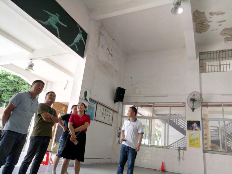 為確保排除安全隱患,傅校長和胡主任帶領安全組成員對學校各個位置的消防安全通道、安全指示標志、應急照明燈、消火栓、滅火器等等進行了認真細致的檢查,并且重點檢查禮堂天花剝落問題,立刻安排維修,排除安全隱患。