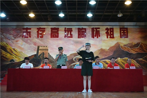 學(xué)生代表高一(1)班余瑤帶領(lǐng)全體學(xué)生進(jìn)行軍訓(xùn)宣誓,鏗鏘的誓言展現(xiàn)了容山學(xué)子戰(zhàn)勝困難、圓滿完成軍訓(xùn)任務(wù)的決心。