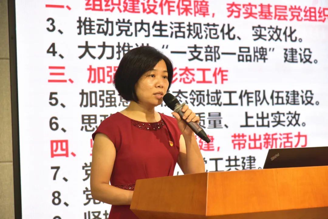 隨后,順德一中外國語學(xué)校黨總支專職副書記劉婷解讀本學(xué)期黨建工作計(jì)劃。劉副書記表示,在一中黨委領(lǐng)導(dǎo)下,我校黨總支要加強(qiáng)學(xué)習(xí),以黨建工作引領(lǐng)品牌學(xué)校創(chuàng)建工作,以態(tài)度引領(lǐng)、方向引領(lǐng)和行動(dòng)引領(lǐng),來加強(qiáng)組織建設(shè)和意識(shí)形態(tài)工作,黨建帶群建,帶出新活力,夯實(shí)基層黨組織根基,促進(jìn)學(xué)校各項(xiàng)工作高位發(fā)展,與學(xué)生一起成長(zhǎng)。
